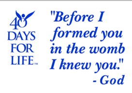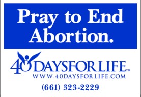 Help 40 Days for Life reach more of the community by posting a yard sign in front of your home, church or business! We know of instances when babies' lives were saved as a result of these yard signs, so the long-term results of your simple act of posting a yard sign could be very significant. Our durable yard signs are available during 40 day prayer vigils at the southeast corner of 25th and H Streets, so please stop by and pick one up at any time which is convenient for you.